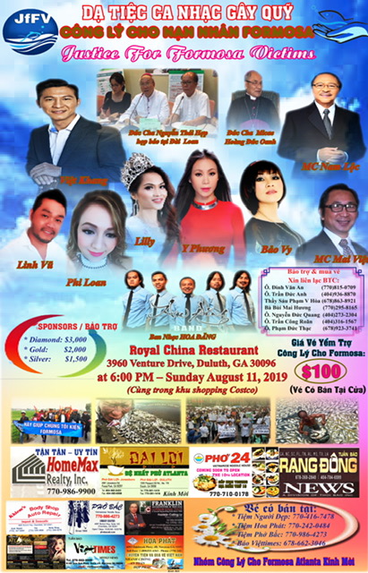 Nhằm mục đích giúp đỡ nạn nhân Miền Trung Việt Nam khiếu kiện công ty Formosa trước tòa án quốc tế; đòi hỏi được đền bù xứng đáng và làm sạch vùng biển bị ô nhiểm. Một bữa tiệc gây quỹ cho Nạn Nhân Formosa sẽ được tổ chức:
