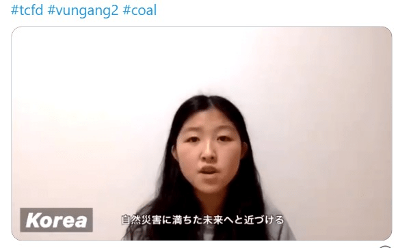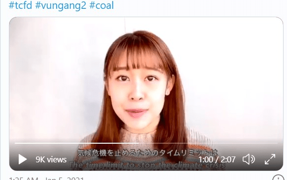 Phong trào Fridays for Future, chi nhánh Nhật Bản, mới đây tải lên Twitter một băng video, trong đó Greta loan báo hết mình ủng hộ chiến dịch “Nói Không với Than vì Tương lai Chúng ta”, một phong trào do Greta Thunberg sáng lập khi còn ở tuổi thiếu niên, kêu gọi học sinh bãi khóa vào mỗi ngày Thứ Sáu để chống biến đổi khí hậu.