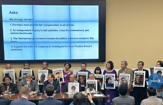 Sau thảm họa môi trường 2016 do Formosa gây nên cho bốn tỉnh miền trung, khiến gần 200,000 người mất việc, cả một vùng biển và đất Formosa cấu kết với nhà nước Việt Nam, không đền bù hoặc đền bù không đủ cho người dân. Khi người dân đi khiếu kiện trong nước thì bị đánh đập bỏ tù cùng với những người đứng lên bênh vực cho họ. Khi vụ kiện được đưa sang Đài Loan và được Tối Cao Pháp Viện Đài Loan cho phép các nạn nhân được kiện tại Đài Loan để đòi đền bù thì cả hai tìm mọi cách để ngăn chận khiến vụ án kéo dài, cốt ý để làm nản lòng và sợ hãi của các nạn nhân. Hiện vụ kiện đã được các tổ chức tranh đấu cho môi trường và nhân quyền trên toàn thế giới sát cánh với cộng đồng người Mỹ gốc Việt tranh đấu đòi hỏi công bằng cho nạn nhân, dọn sạch vùng biển bị ô nhiễm và làm việc với nhà nước VN thả các tù nhân lương tâm ngay lập tức và vô điều kiện.